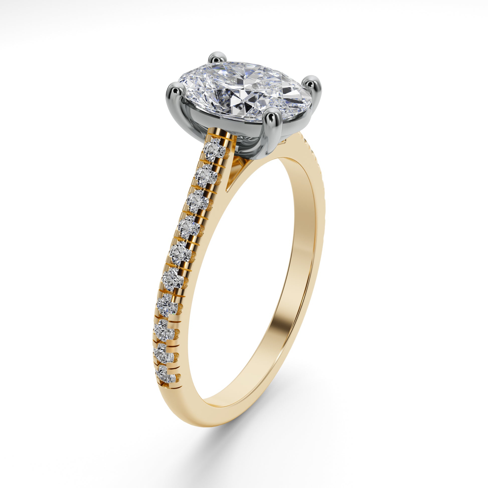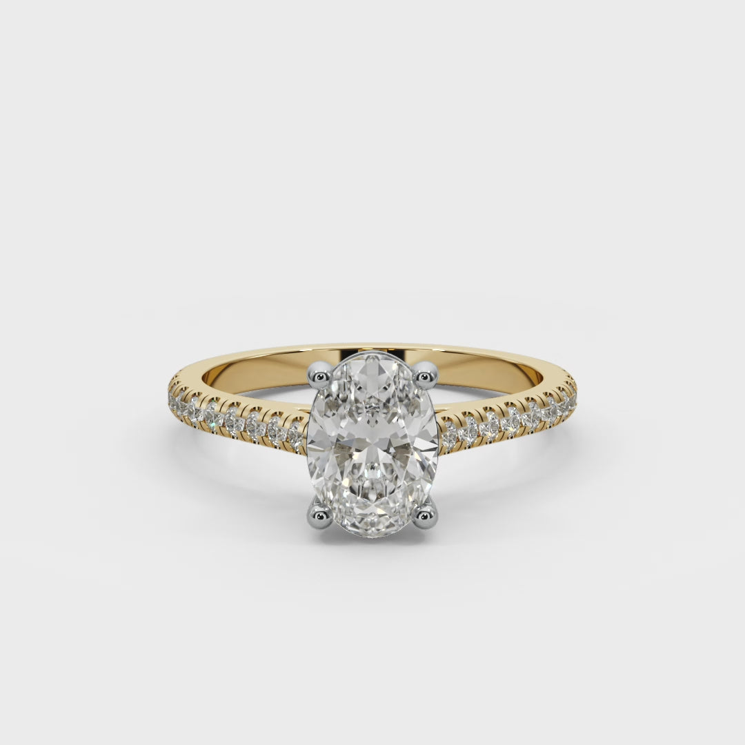 • Diamond: 2.0 carat oval-shaped lab-grown diamond, ethically sourced and environmentally conscious.
