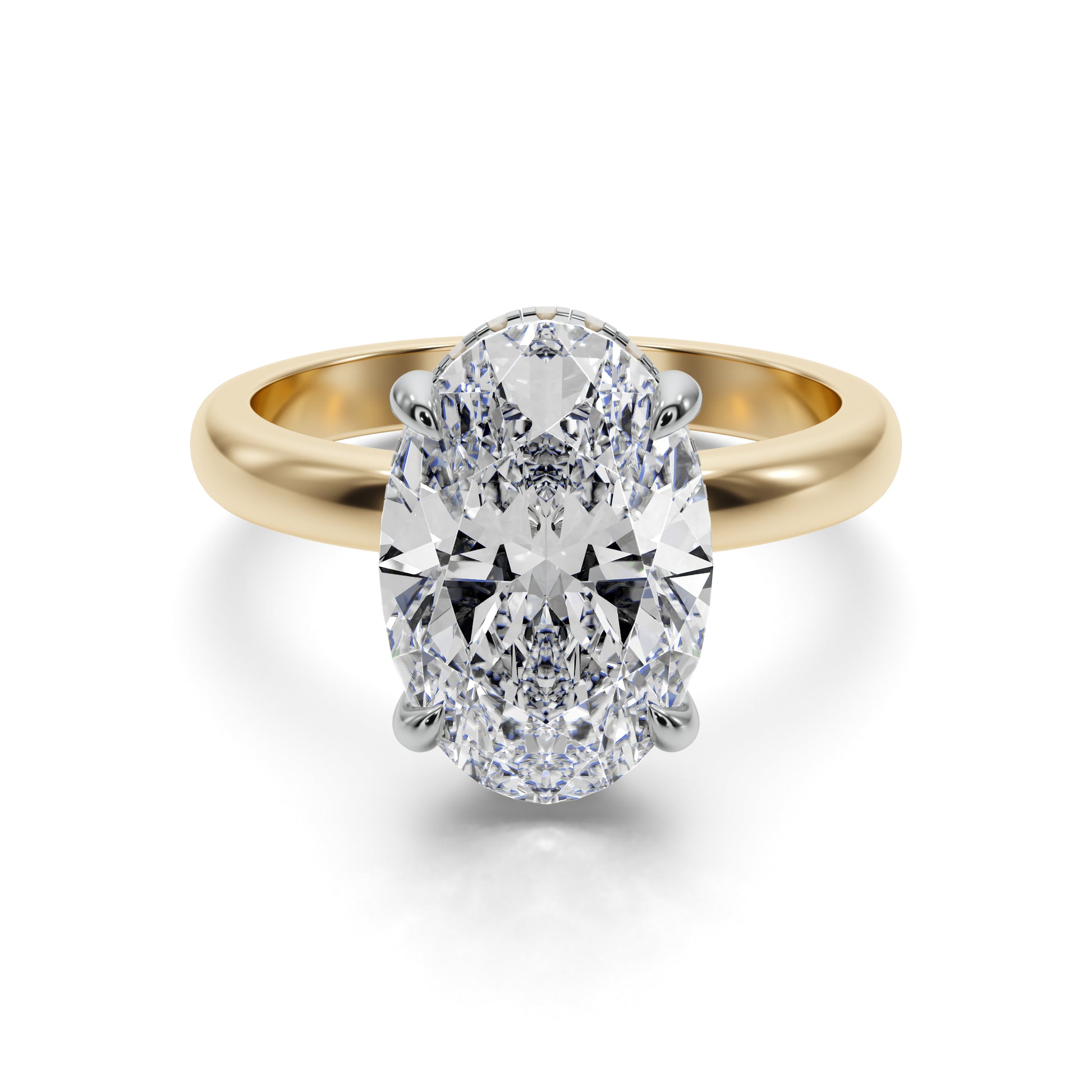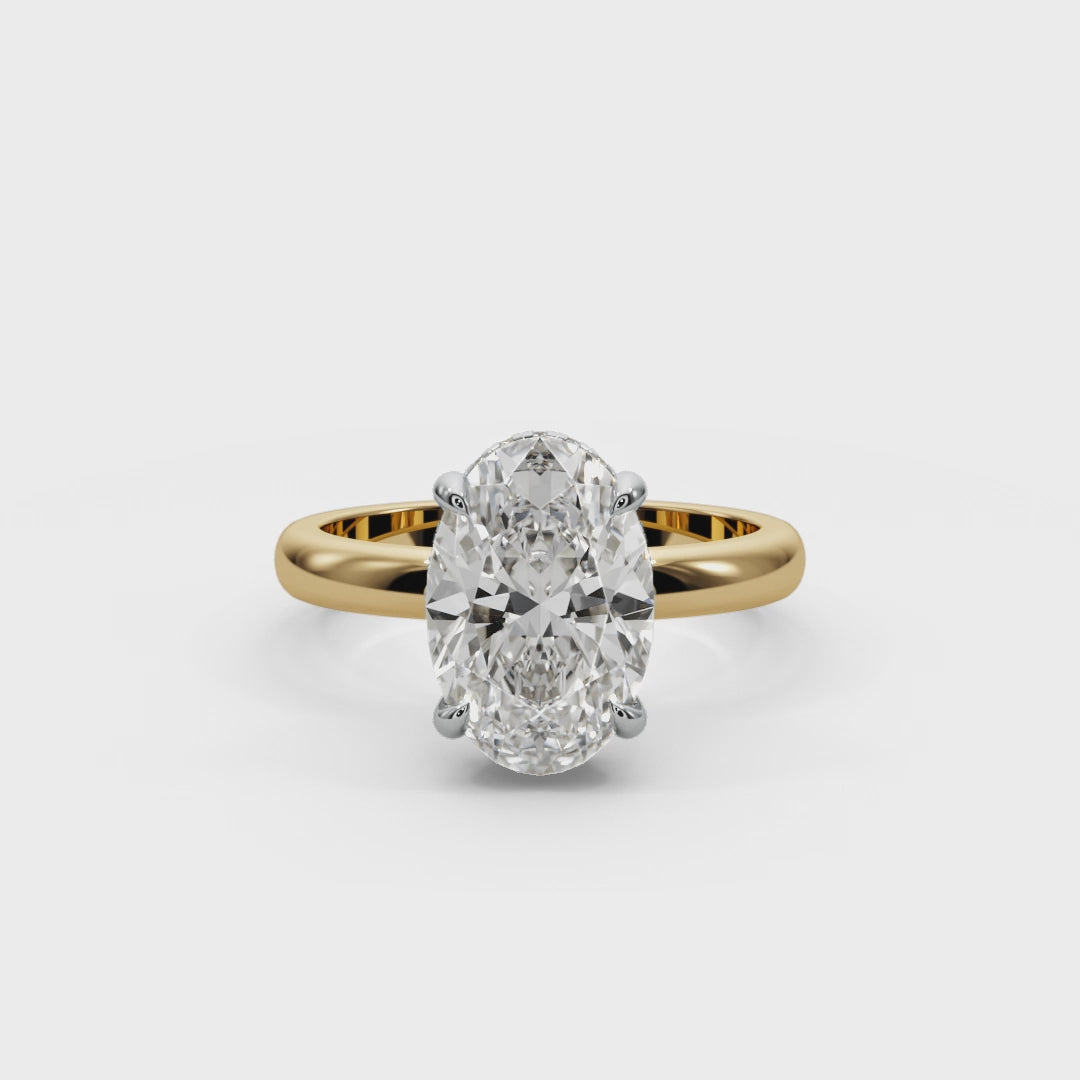 • Captivating Diamond with Hidden Halo: A 3.00ct oval lab-grown diamond, subtly framed by a hidden halo to intensify sparkle and depth.